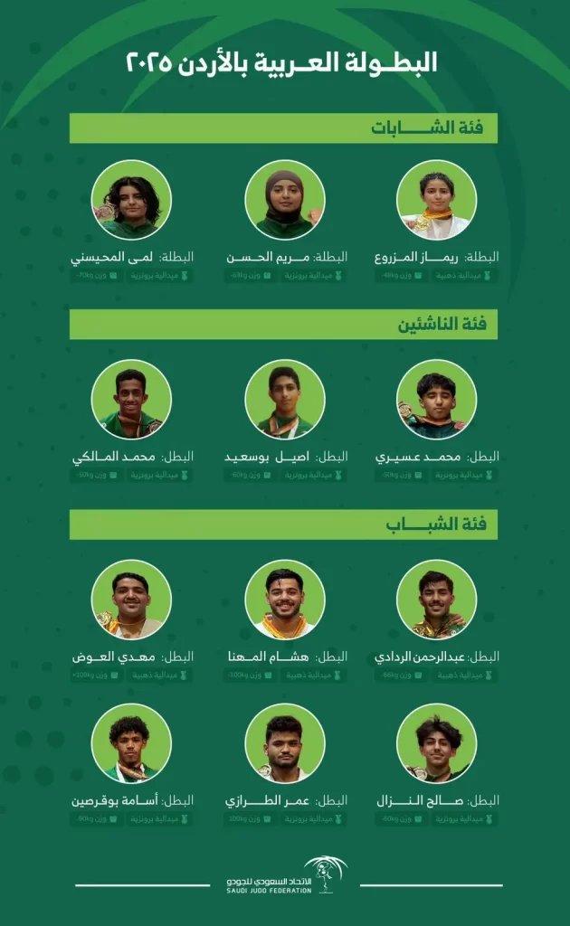 تُوِّج لاعبو ولاعبات المنتخب السعودي للجودو في البطولة العربية للجودو 2025، في فئات الشابات، الناشئين، والشباب. كما حقق منتخب الشباب المركز الأول في الترتيب العام.🥇 مبروك لأبطال وبطلات الجودو على هذا الإنجاز المشرف.✨👏🏻🇸🇦